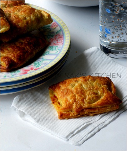 Today I tried this vegetable puff from store bought frozen butter puff pastry sheets. It came out nice,was a perfect tea snack for my kid. He enjoyed this and wanted frequently