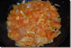 - Heat a kadai with oil and fry onions to golden brown and then add chopped tomatoes and salt.