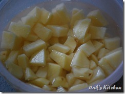 - Peel the potato skin,wash and cut into 1 inch pieces as shown in the picture.Keep immersed in water till you use.